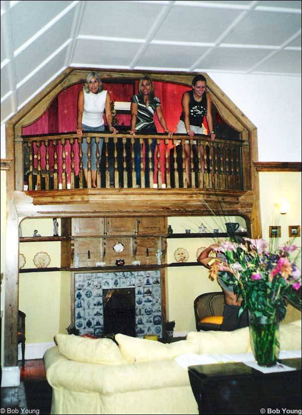2005 - in my home in Surrey. On the balcony are L-R sister Christine, sister Jane and daughter Kirstie. And showing off his muscles behind the flowers son Sam.