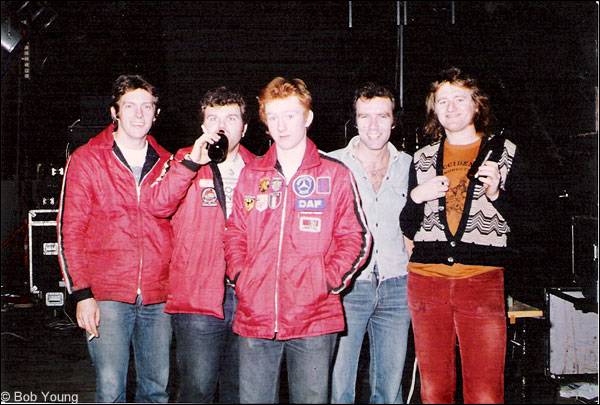 c1976 Quo crew L-R Slug, Cass, Nipper, me and Mal