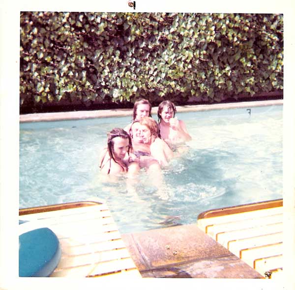 1973 in the swimming pool of The Travel Lodge in Hollywood with Francis, Rick, Alan & Colin during the first American tour.