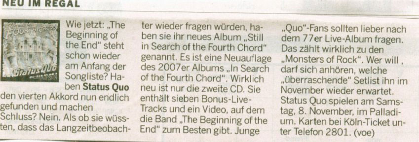 - 23.10.: die Oberhessische Presse kündigt für Sommer 2009 ein Status Quo Konzert im Herrenwaldstadion von Stadtallendorf an. ...mehr