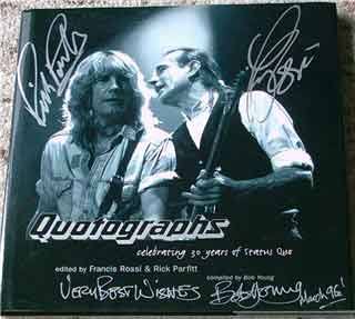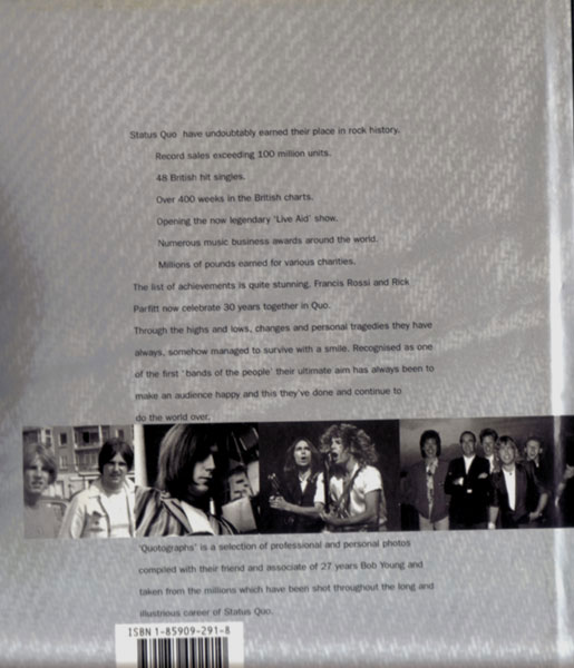 2008 - Status Quo - The Ultimate Gigography by Thomas Franckh 2009- Goin' Quoin' - Yvonne Hanvey (Adam Publishing) 2011 - "Status Quo - sobran acordes" by Eduard Sorobellas Vidal (Lenoir Ediciones, Spain) (ISBN: 978-84-938163-9-1) -> picture