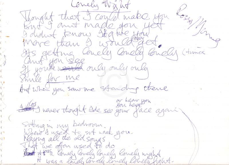 These are the original lyrics to 'Lonely Night' which was the B-side