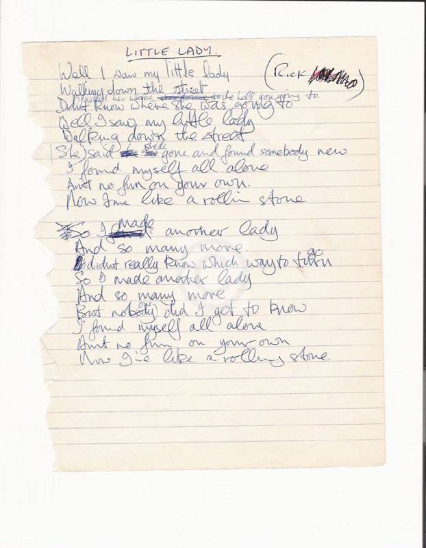 handwritten lyrics 'Little Lady'.