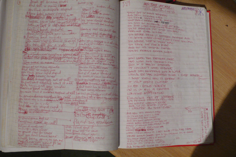 handwritten lyrics 'It's Stupid Cupid'.