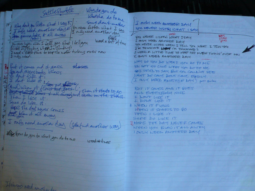 handwritten lyrics 'Another Day'.