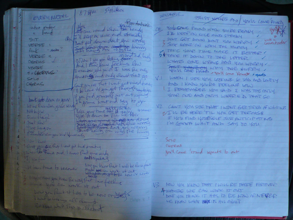 handwritten lyrics 'You'll Come Round'.