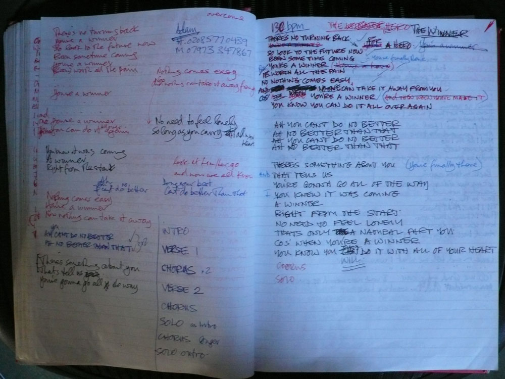handwritten lyrics 'The Winner'.