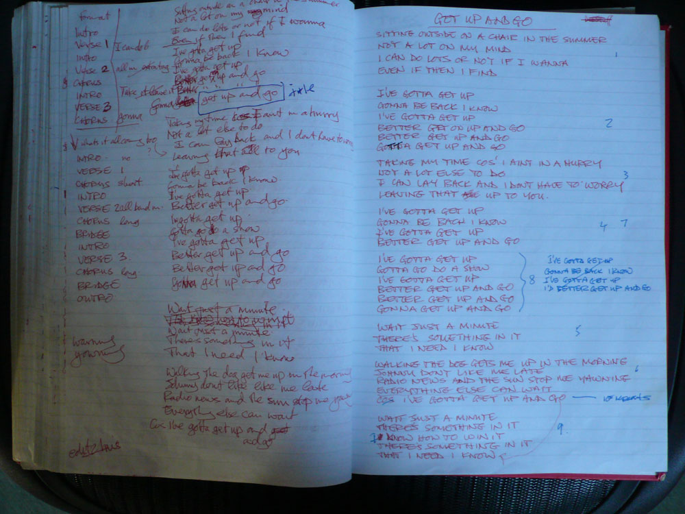 handwritten lyrics 'Get Up And Go'.
