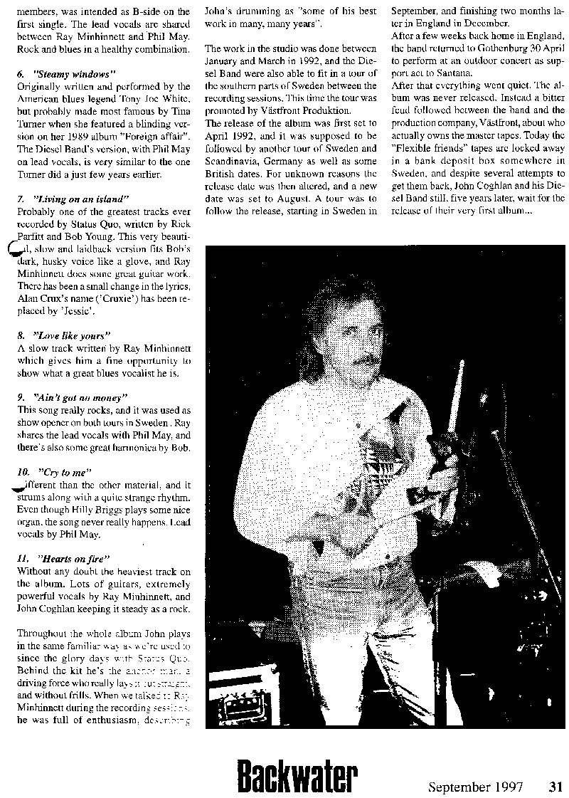 <-- back Backwater Magazin - September 1997; Article about the Diesel Band Page 4 Thanks to Per Engelbo and Olle Ostergard