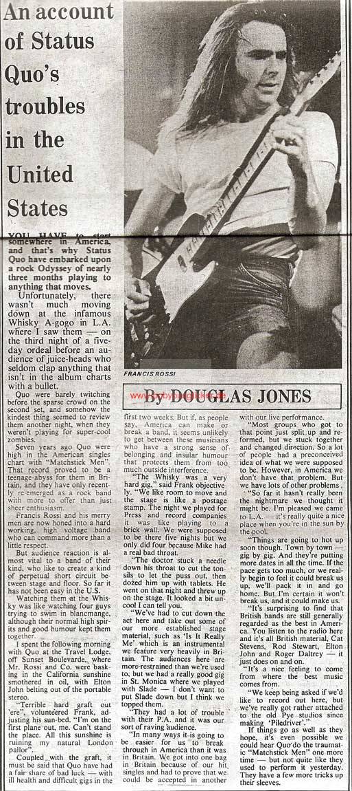 <-- back Article about Status Quo in the New Musial Express - 2nd June 1973 Headlines: SUPER-COOL ZOMBIES AND CALIFORNIA SUN