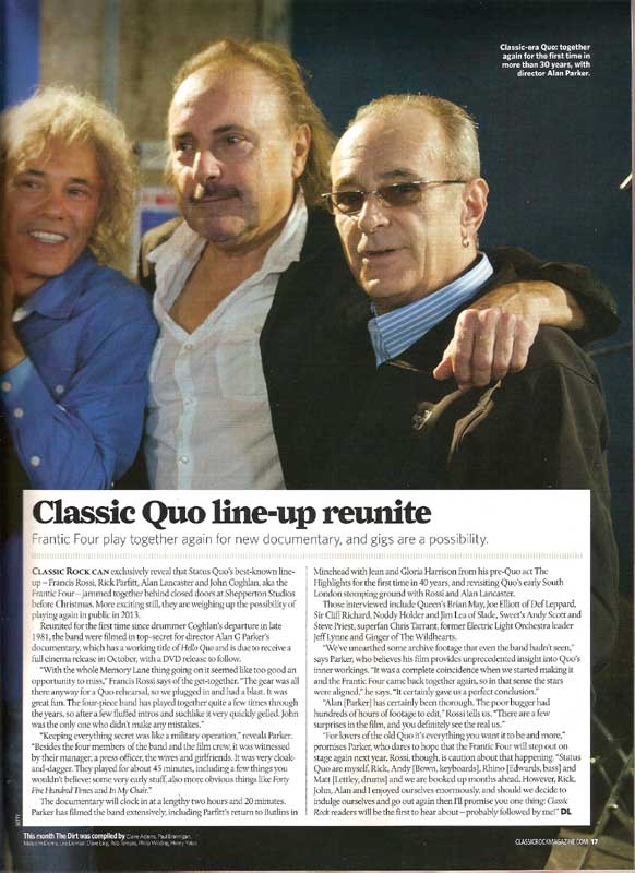 <-- back Classic Rock Magazine 2012 the old Quo line-up together - 2012