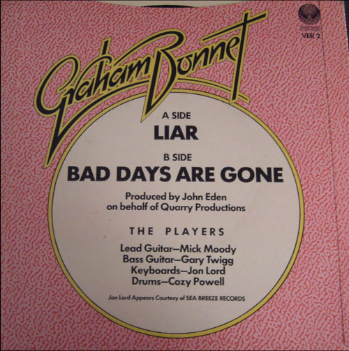 Bob Young discography Graham Bonnets Single "Liar" UK 1981 (Cat. VER 2) B-Side Young & Moody "Bad Days Are Gone"
