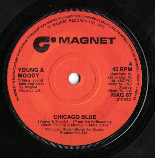 Young & Moody Single: Chicago Blue / Warm winds - UK 1977 Cat.No.: Magnet MAG87 (photo by kind permission J.Hodgson)