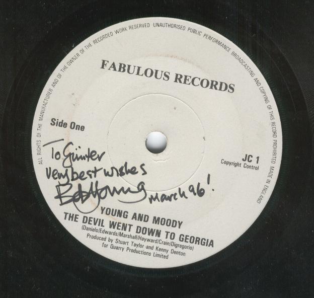 Young & Moody Single: The devil went down to Georgia / You can´t catch me - UK 1979 Cat.No.: Fabulous Records JC1 (photo by kind permission G.Röder)
