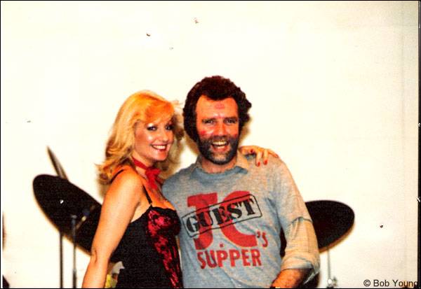 1982 Not quite as incriminating as it looks. After the release of my ‘In Quo Country’ album I decided it would be fun to put together the band that played on the album and do one show. It just happened to be at Wembley Arena supporting Kris Kristofferson. My birthday fell during rehearsals and a friend sent me a Kissogram and here she is…… (and much better than a male strippogram)