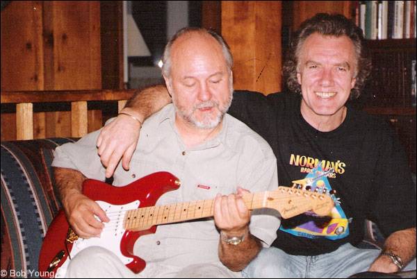 1993 in the Nashville home of legendary guitarist and songwriter Sonny Curtis www.sonnycurtis.com during the filming of ‘Curves Contours & Bodyhorns’ the very successful TV documentary of 40 years of the Fender Stratocaster guitar. Check out Sonny’s extraordinary history. He was with Buddy Holly’s Crickets and wrote many great songs including ‘I Fought The Law’. I spent over two years with guitarist Ray Minhinnett writing, producing and filming the award winning ‘Curves’ film. We interviewed many of the great Strat players including Eric Clapton, George Harrison, Bryan Adams, Rory Gallagher, Hank Marvin, Mark Knopfler, Richie Sambora, Nile Rodgers, etc. We also wrote an accompanying book that has had several reprints and still available Story-Fender-Stratocaster book