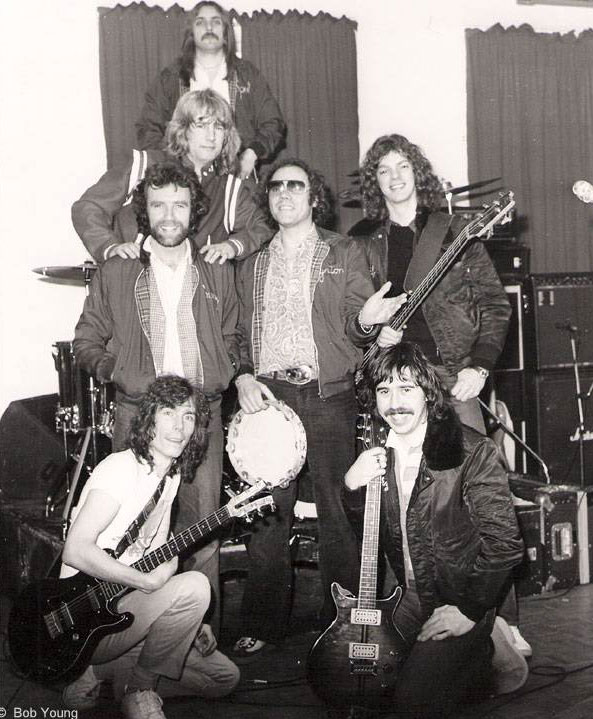 The Diesel Band in Guernsey, Channel Islands. John Cohlan, Rick Parfitt, BY, Jackie Lynton, Neil Murray Andy Bown and Micky Moody. I’ll try and find more photos from this very silly tour.
