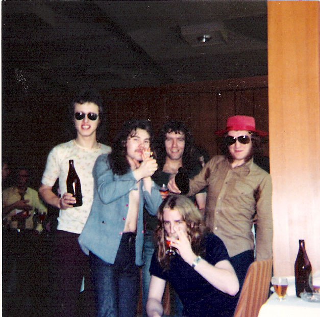 1973 first Oz tour. L-R Ray Laidlaw (Lindisfarne) Alan, BY, Noddy Holder, Rick