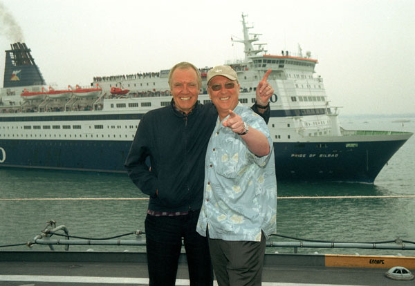 back to photo index With Neil Warnock on the HMS Ark Royal for the launch of the 'Heavy Traffic' album.