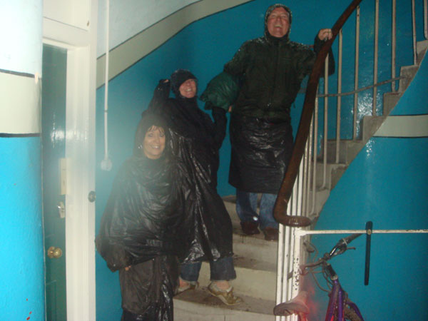 back to photo index August 2008 Edinburgh. Sue, Dorothy and Arthur after a wet and windy night out