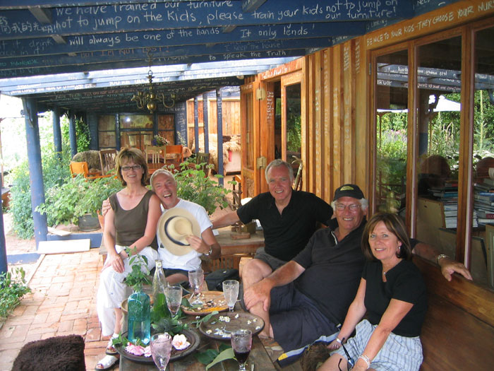 back to photo index 2003 in Akaroa New Zealand L-R Suzanne Doig, the mayor of Akaroa, me, Chris Doig and Sue. Suzanne and Chris are both famous NZ opera singers.