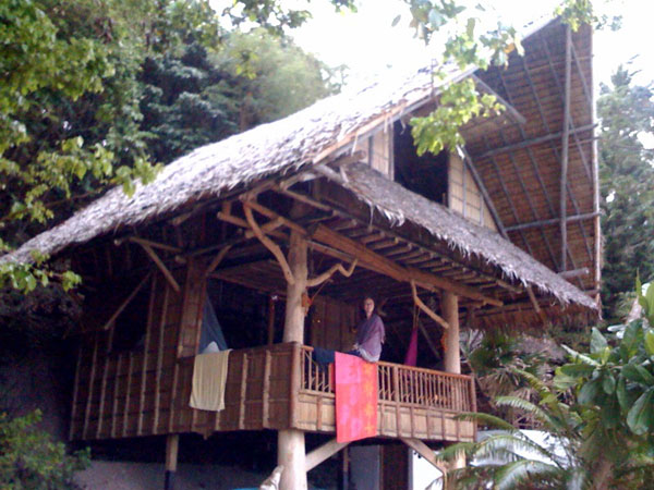 Jan 2009 daughter-in law Jo in the beach hut she and Jamie are staying in during their holiday on the small island