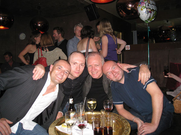 back to photo index Kirstie and Barney's engagement party L-R son Sam, Barney, Big Daddy, mad son Jamie