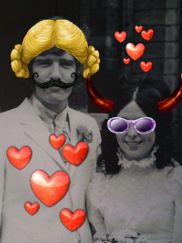 1968 me and Sue with a few silly recent additions to the photo by future Son-In-Law Barney