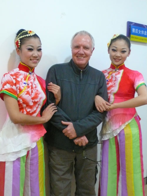 back to photo index April 25th 2009 With two of the many dancers performing at the Expo 2009 televised concert in Hefei China where Croatian classical pianist Maksim performed
