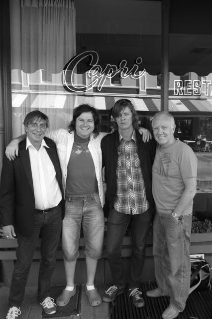 back to photo index Fremantle Oz Oct 2009 L-R Music publisher Ian James, Joe Echo, Phil Stevens Jarrah Records, me.