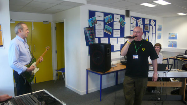 back to photo index 2009 Aylesford School Kent. Francis playing along with Kevin Thompson one of the teachers