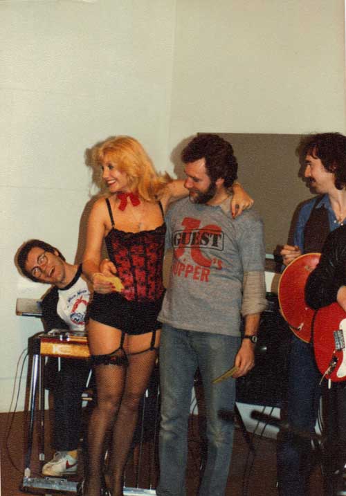 back to photo index 1981 London at rehearsals with the musicians for my 'In Quo Country' album + the singing birthday telegram girl (my birthday... :-)