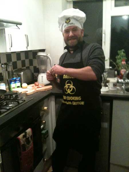 Feb 2011 son Jamie cooking our favourite speciality macaroni gravy