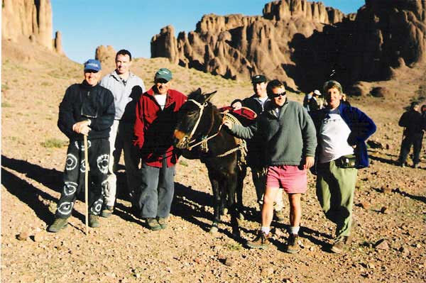 2000 Walking in the Atlas Mountains Morocco L-R BY, a Lynch brother, Michael Watt, Mule, Paul Lynch, Joel Watt, Andre Ptaszynski