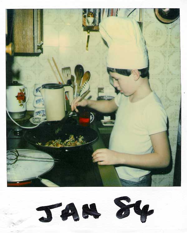 back to photo index Jan 1984 Son Jamie having a cook-up