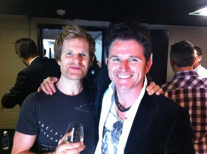 2012 INXS' Ciaran Gribbin and Duran Durans guitarist Dom Brown backstage after Durans gig in Sydney