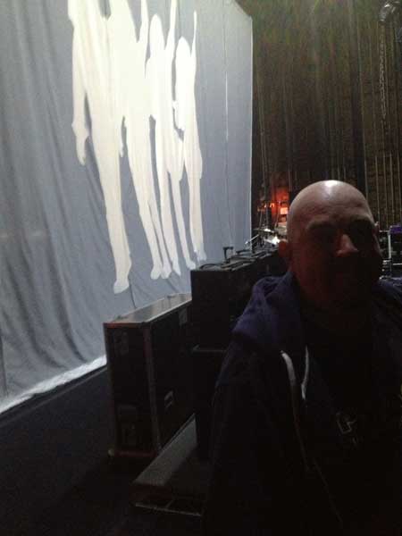 back to photo index March 2013 Quo Reunion Tour Manchester behind the curtain. Drum technician and good geezer Lance Miles