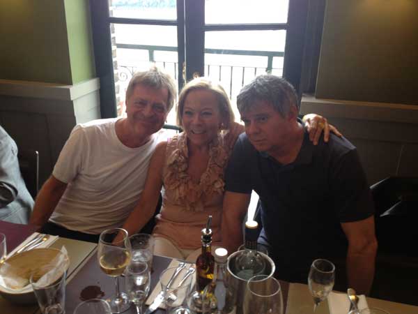June 2013 Barnes lunch L-R Billy Nichols (songwriter etc), Pauline McLeod (Writer) and Jean Jacques-Brunel (The Stranglers)