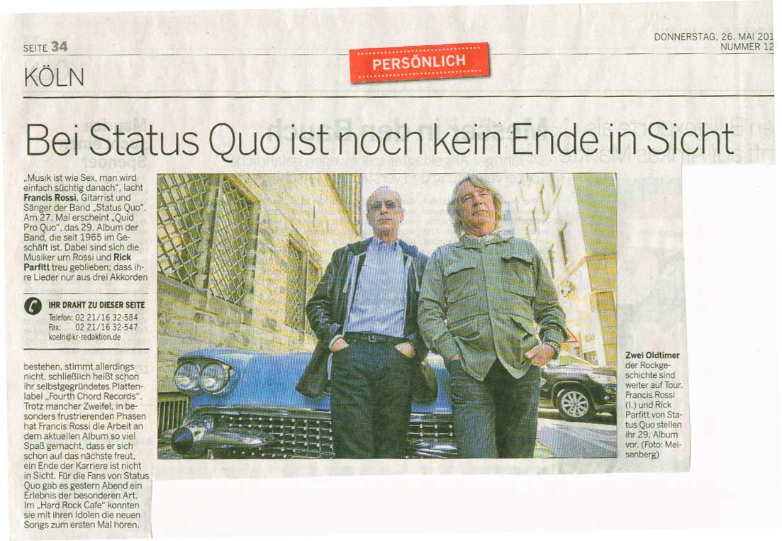 Bereits am 25. Mai ab 12:00 Uhr werden aus diesem Anlass Francis Rossi und Rick Parfitt im "Hard Rock Café", Köln ihr nunmehr 29. Studioalbum persönlich den Medien vorstellen.